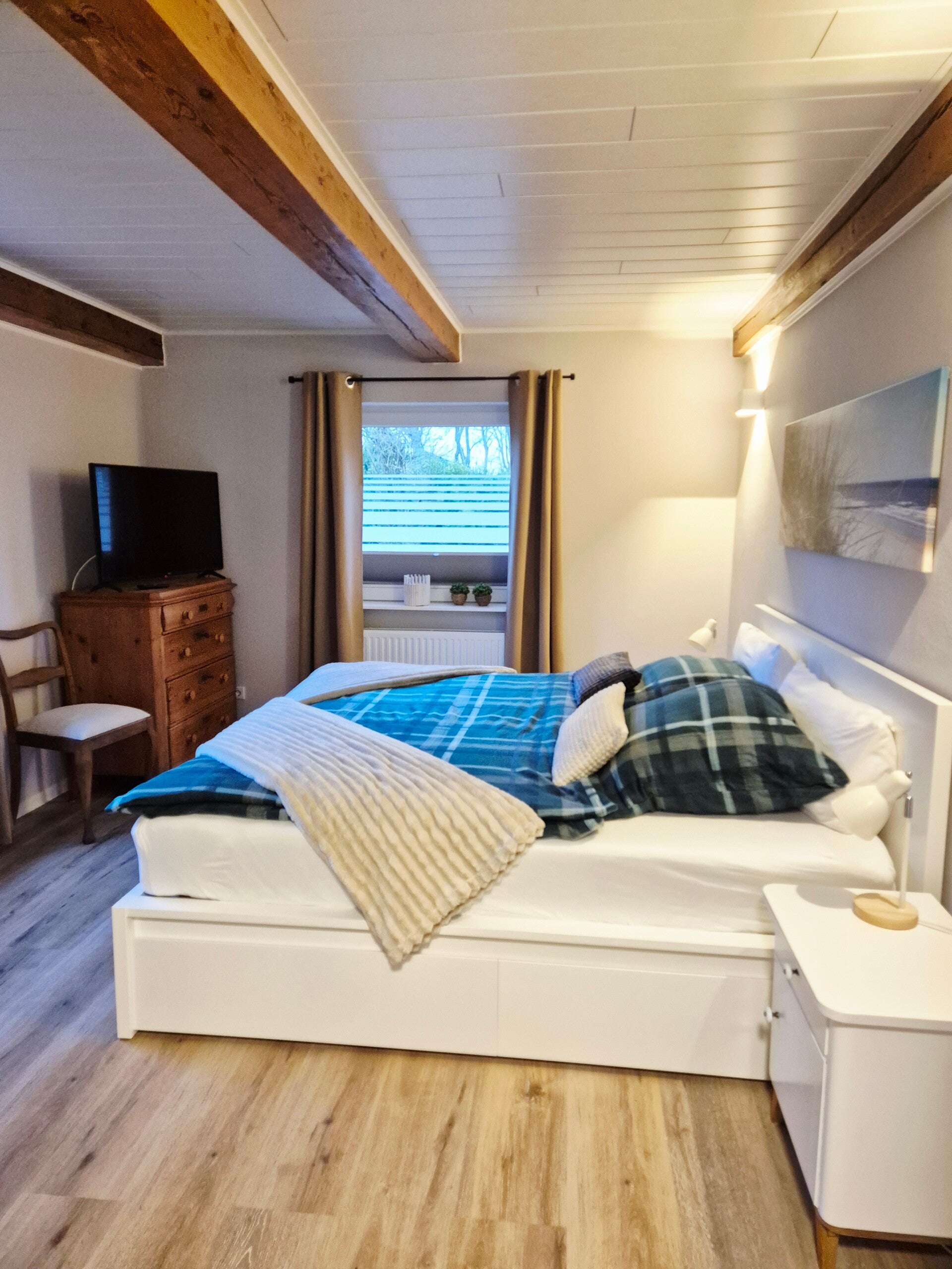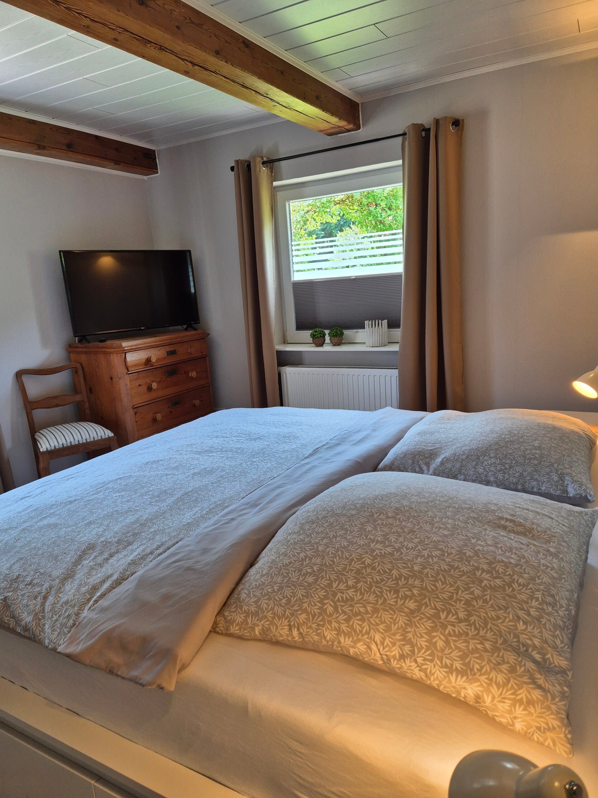 Unsere drei gemütlichen Schlafzimmer sind darauf ausgelegt, Dir maximalen Komfort zu bieten. Mit hochwertigen Bodyguard Matratzen, Toppern und vollständiger Verdunkelung garantieren wir erholsame Nächte und süße Träume. Hier findest Du Ruhe und Entspannung nach einem erlebnisreichen Tag in Rodenäs.