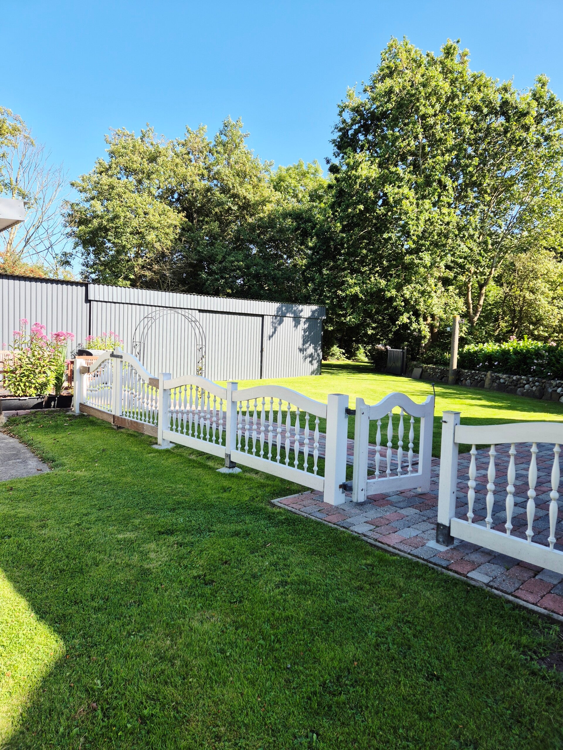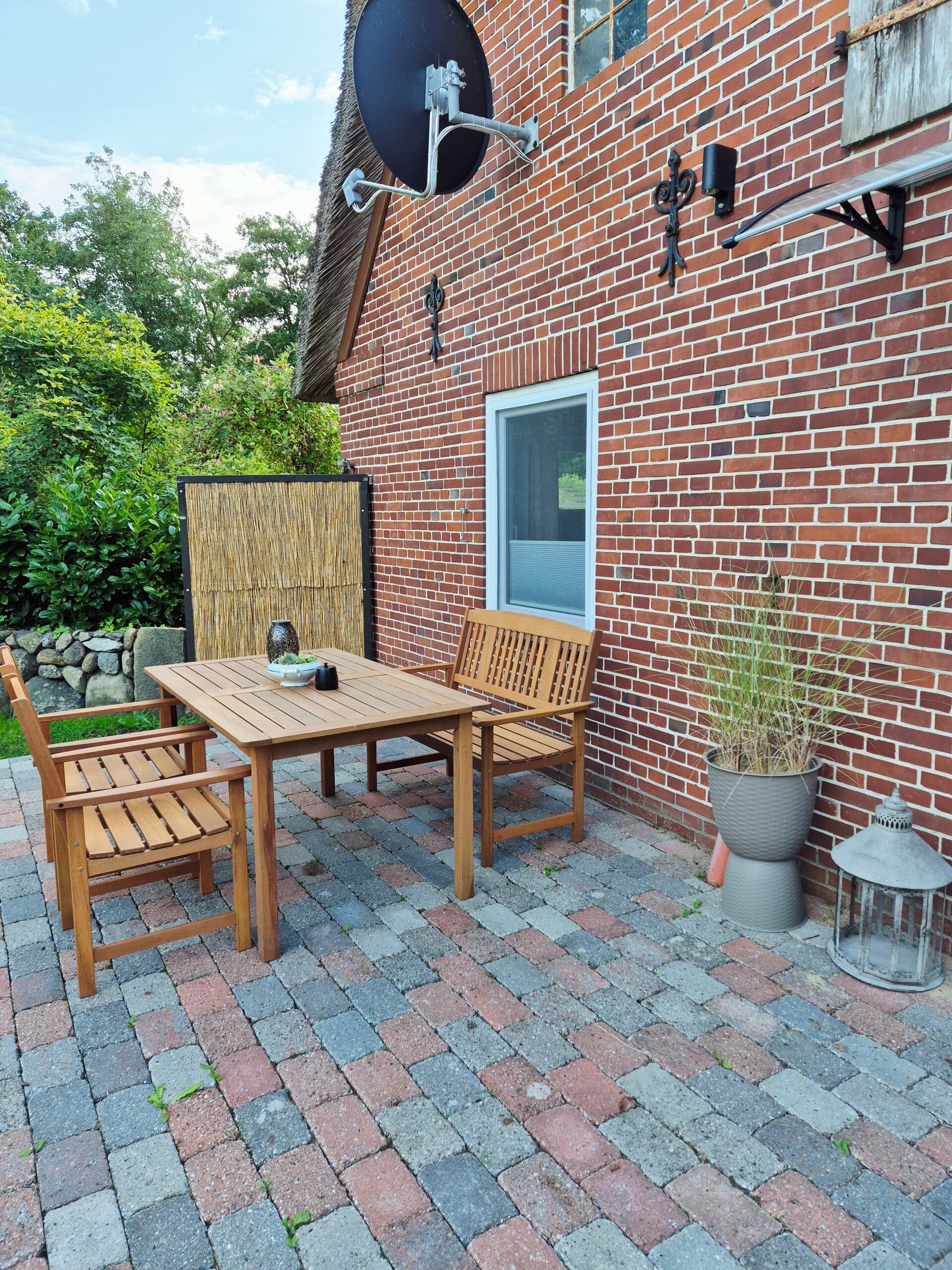 Genieße die frische Luft auf unseren zwei Terrassen mit bequemen Gartenmöbeln, umgeben von einem liebevoll angelegten, eingezäunten Garten. Als ebenerdige und barrierefreie Ferienwohnung mit gratis Parkplätzen direkt vor der Tür bieten wir Dir Komfort und Zugänglichkeit für einen entspannten Urlaub, in einem historischen Reetdachhaus von 1860, das auch im Sommer angenehm kühl bleibt.